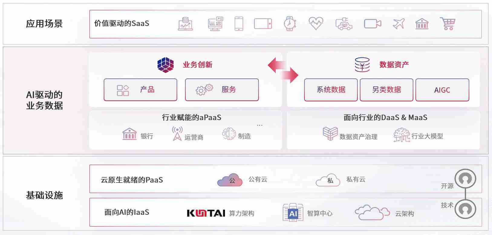 数字时代,,,围绕企业数字化转型的关键要素,,,,C币钱包数码开创性的提出数云融合战略和技术体系框架,,,着力在云原生、、、、数字原生、、、、AI原生和信创产业上架构产品和服务能力,,,,为处在不同数字化转型阶段的快消零售、、、汽车、、、、金融、、、、医疗、、政企、、、、教育、、、、运营商等行业客户提供泛在的敏捷IT能力和融合的数据驱动能力,,构建跨界融合创新的数字业务场景和新业务模式,,助力企业级客户建立面向未来的核心能力和竞争优势,,全面推动社会的数字化、、、、智能化转型升级。。